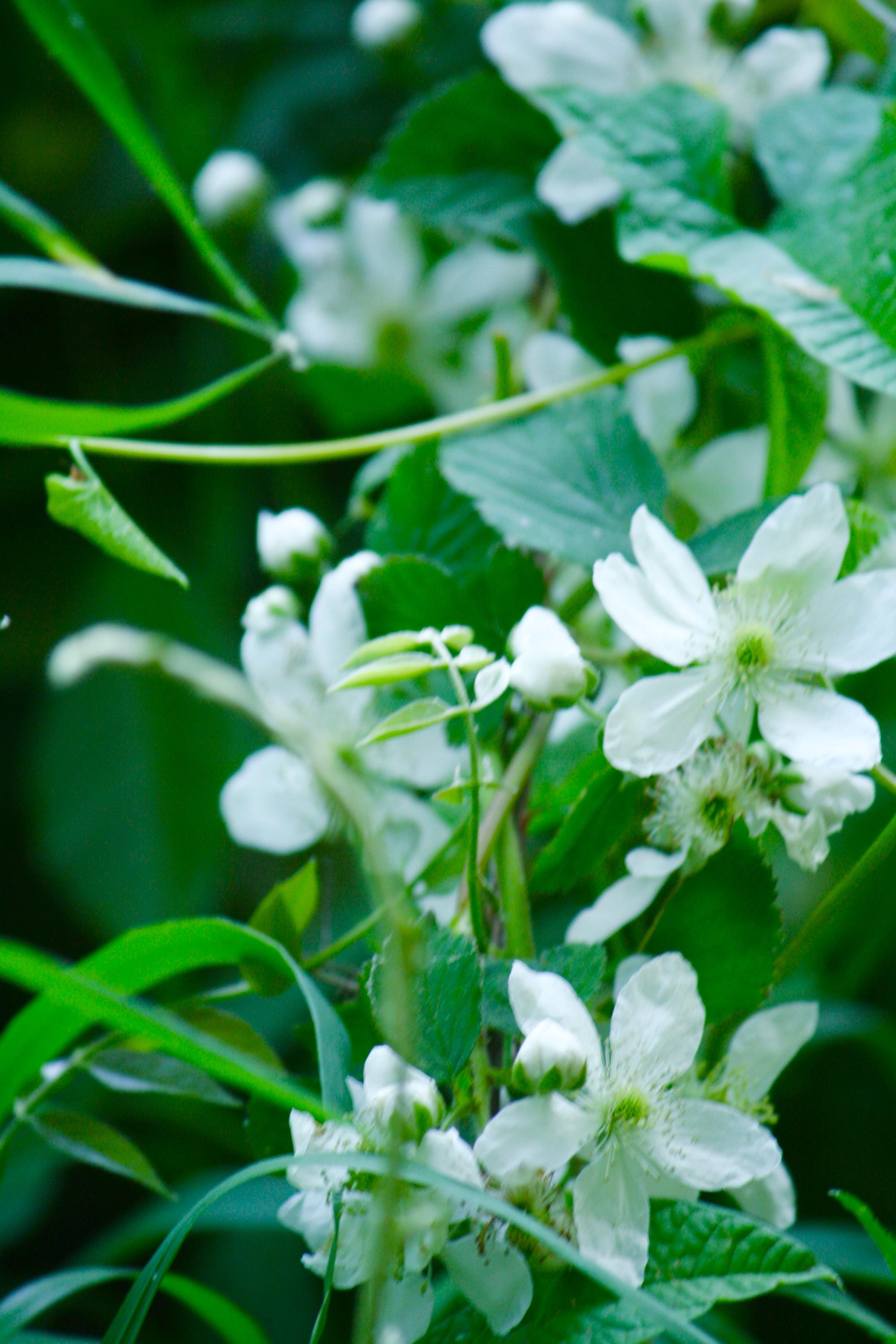 -11x14 photographic print of a white flower blooming on a blackberry bush.