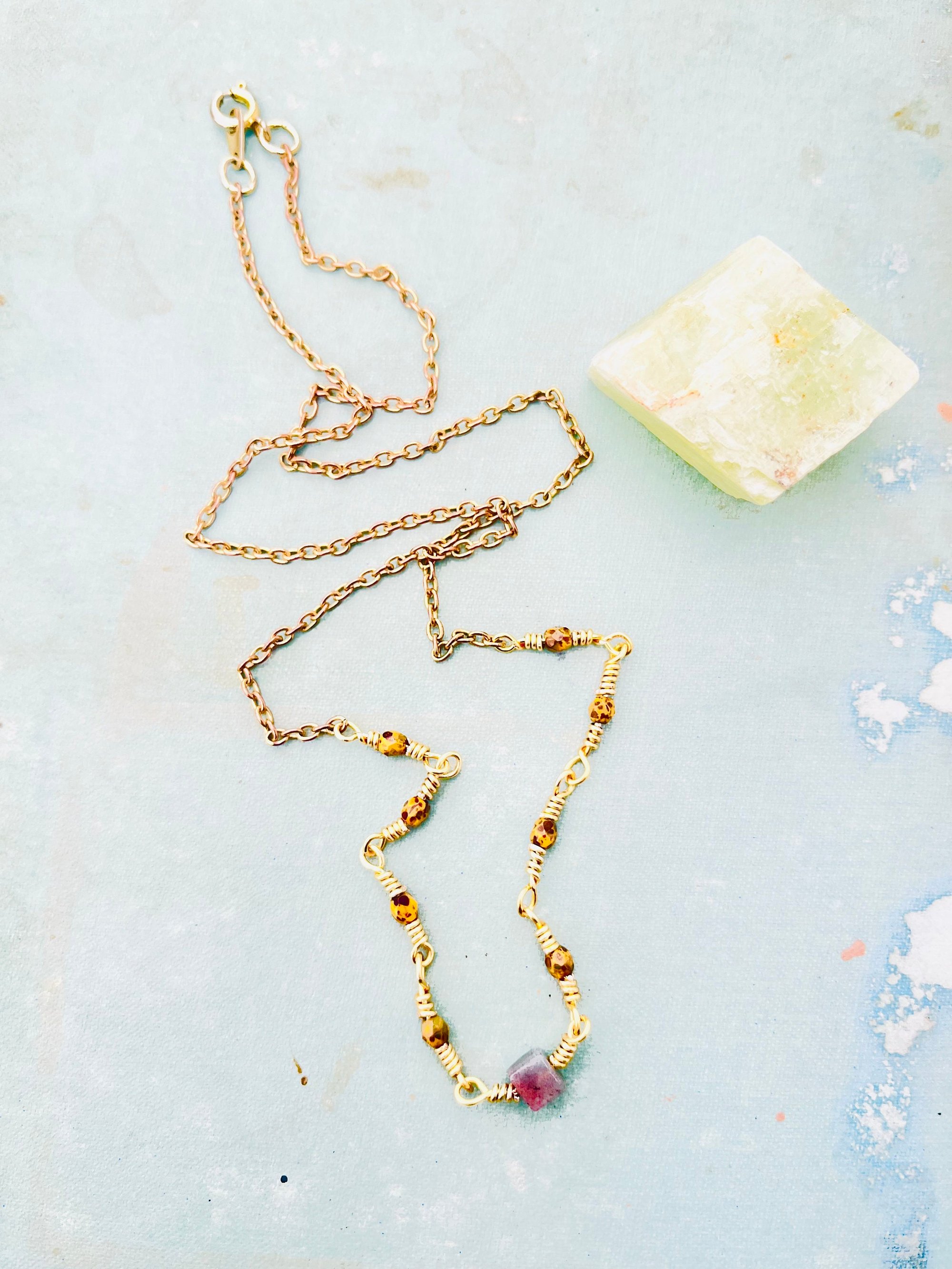 ~two different types of jasper, tiny brown jasper and one light purple square jasper in the center
