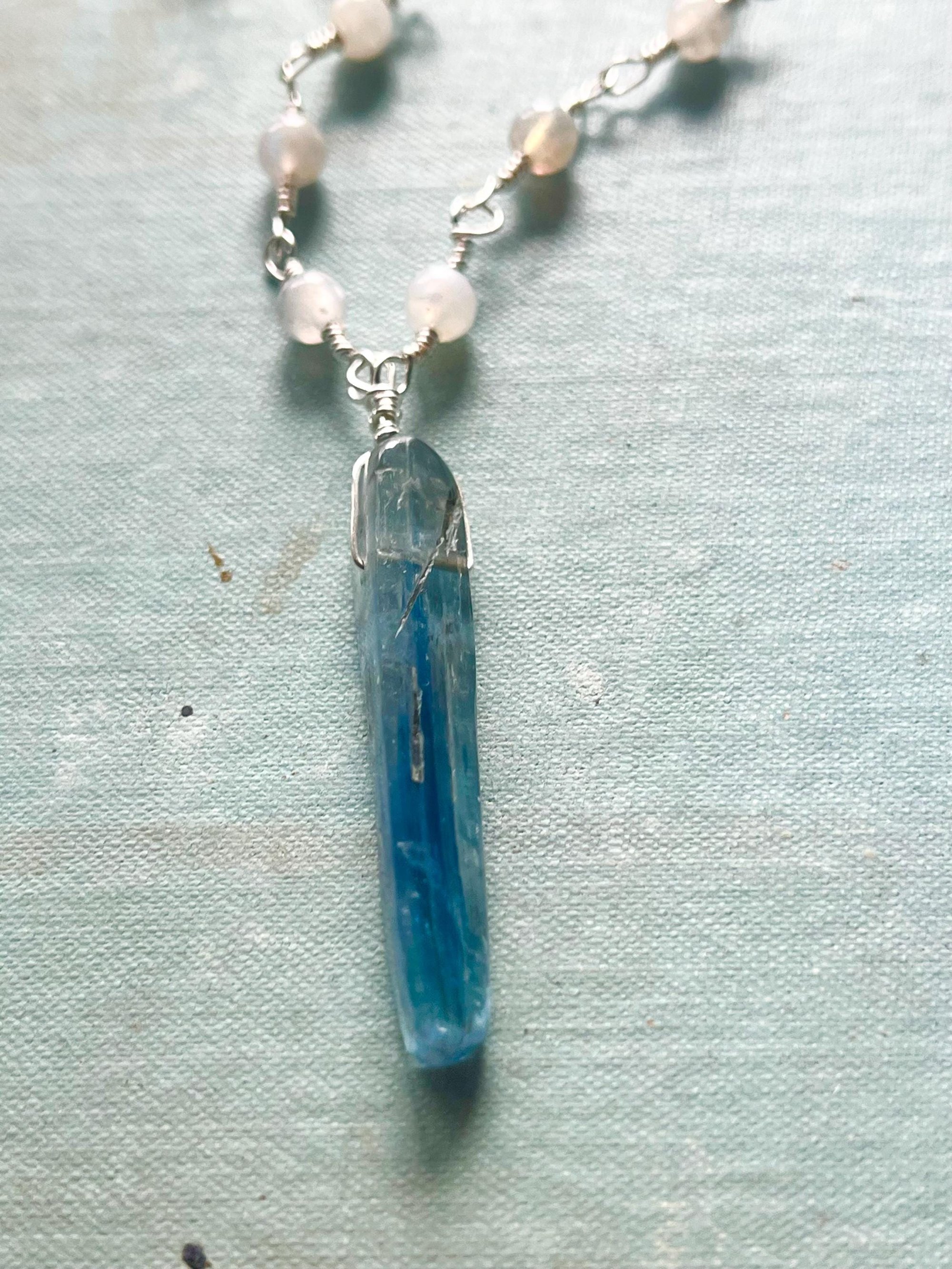 ~made with a blue kyanite centerpiece, labradorite, and silver toned wire.