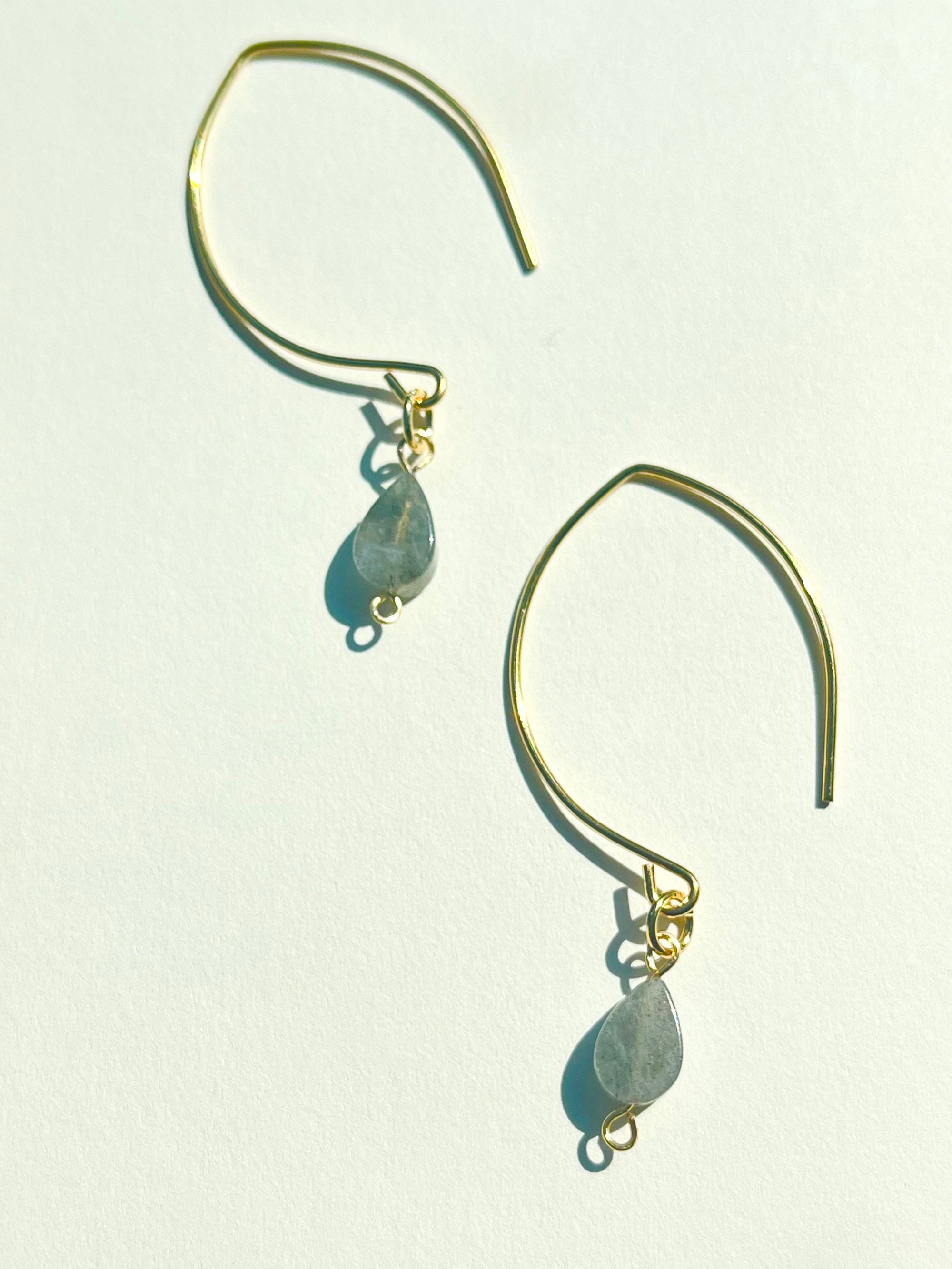 These earrings are made with tiny labradorite stones on 10k gold wire earrings. They measure 2 inches each and come to you gift wrapped!