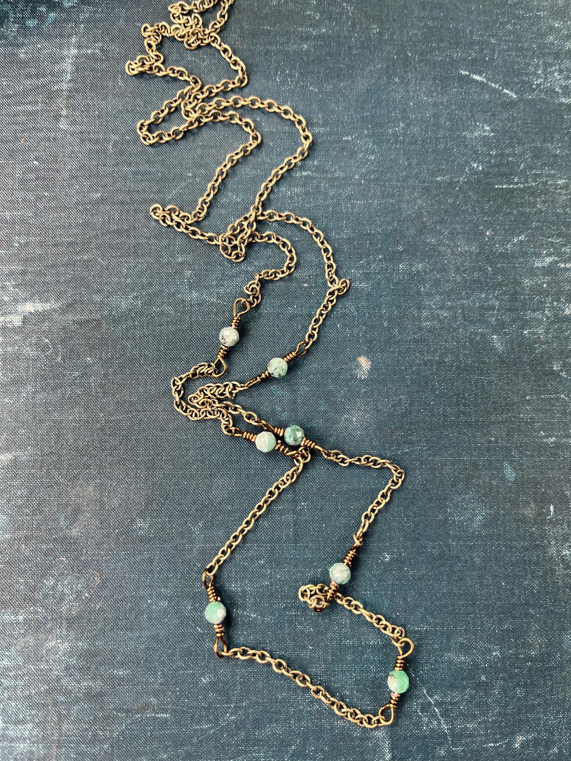 ~measures 30 inches long and doesn’t having a clasp, it’s big enough to pull over your head.