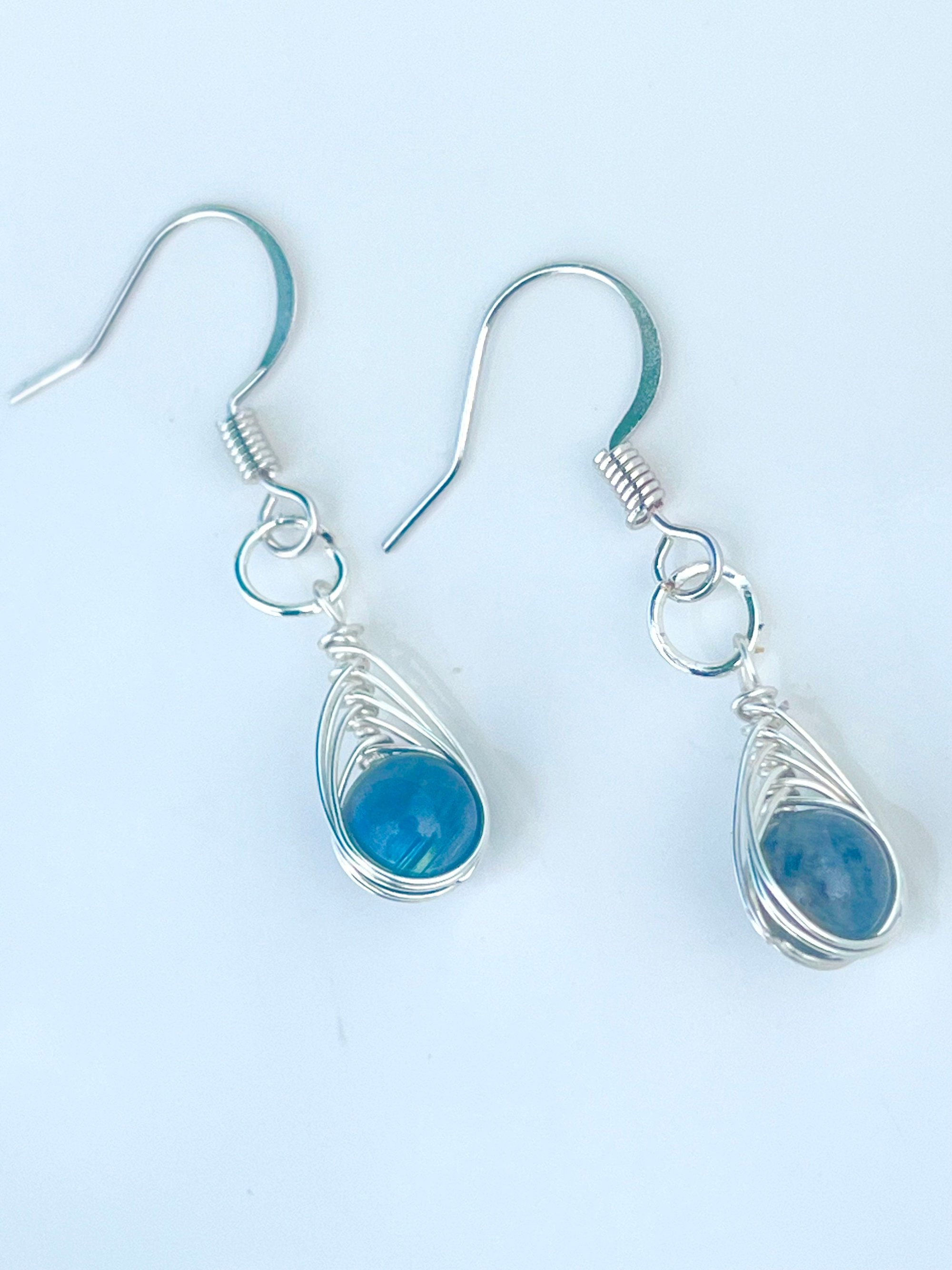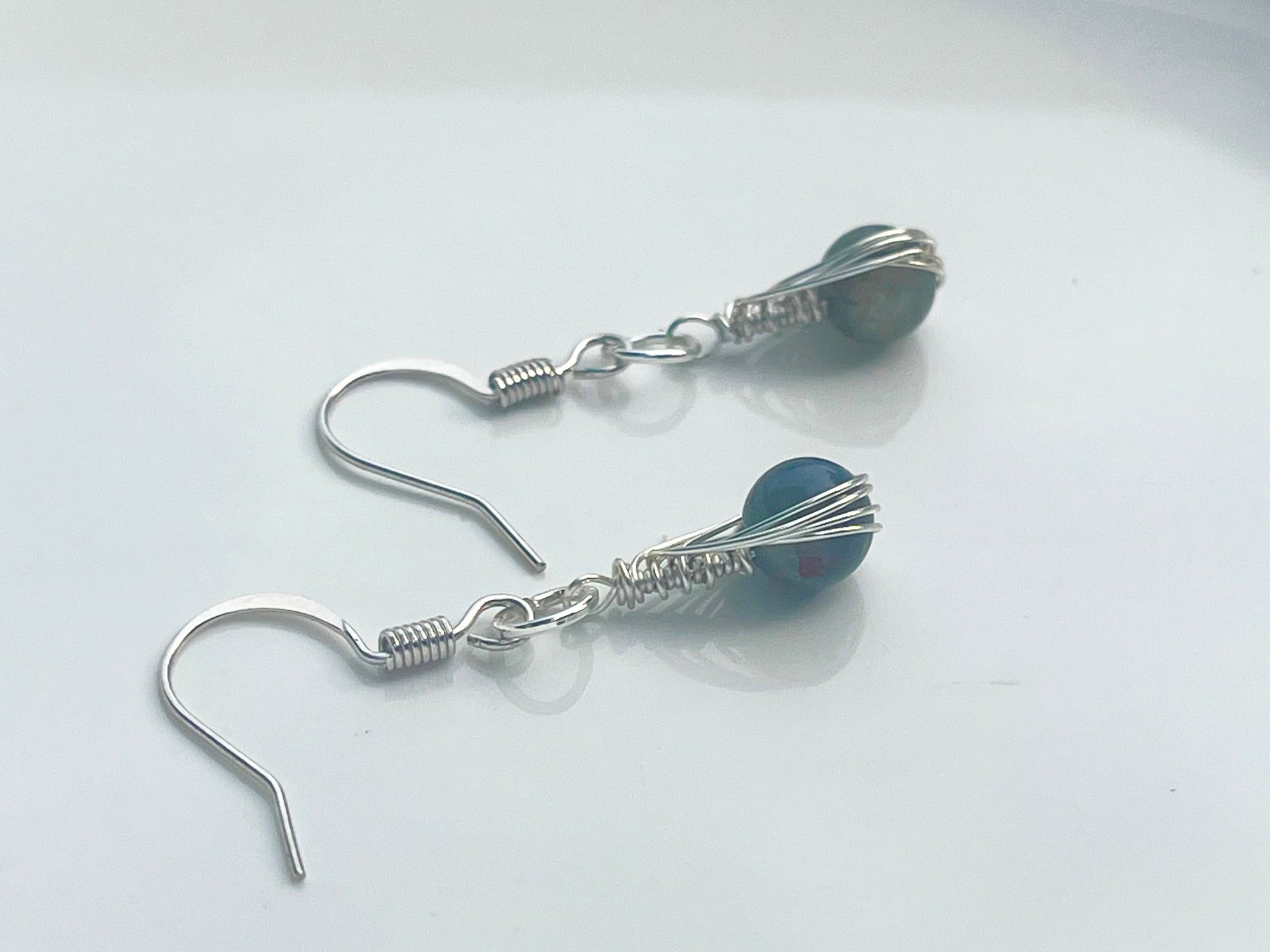 These mini dangly earrings are made with round labradorite stones and silver wire. They measure 1.5 inches each.