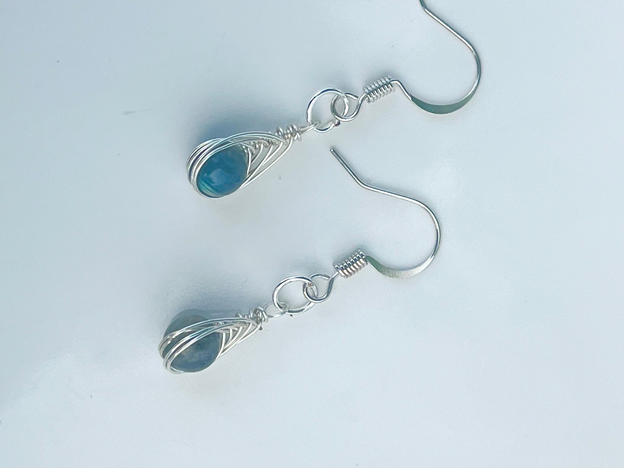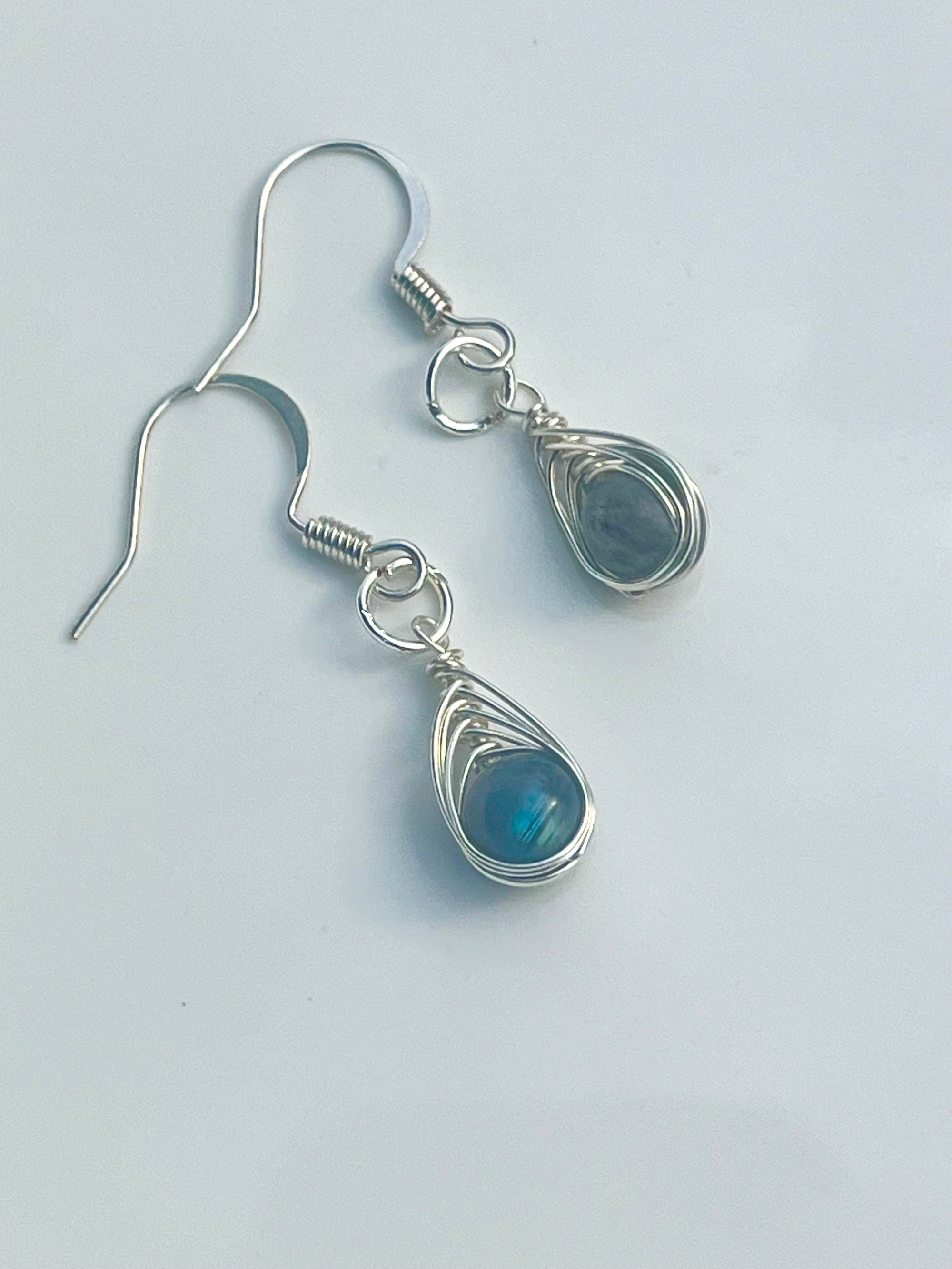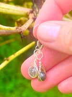 Mini labradorite wire wrapped earrings in silver