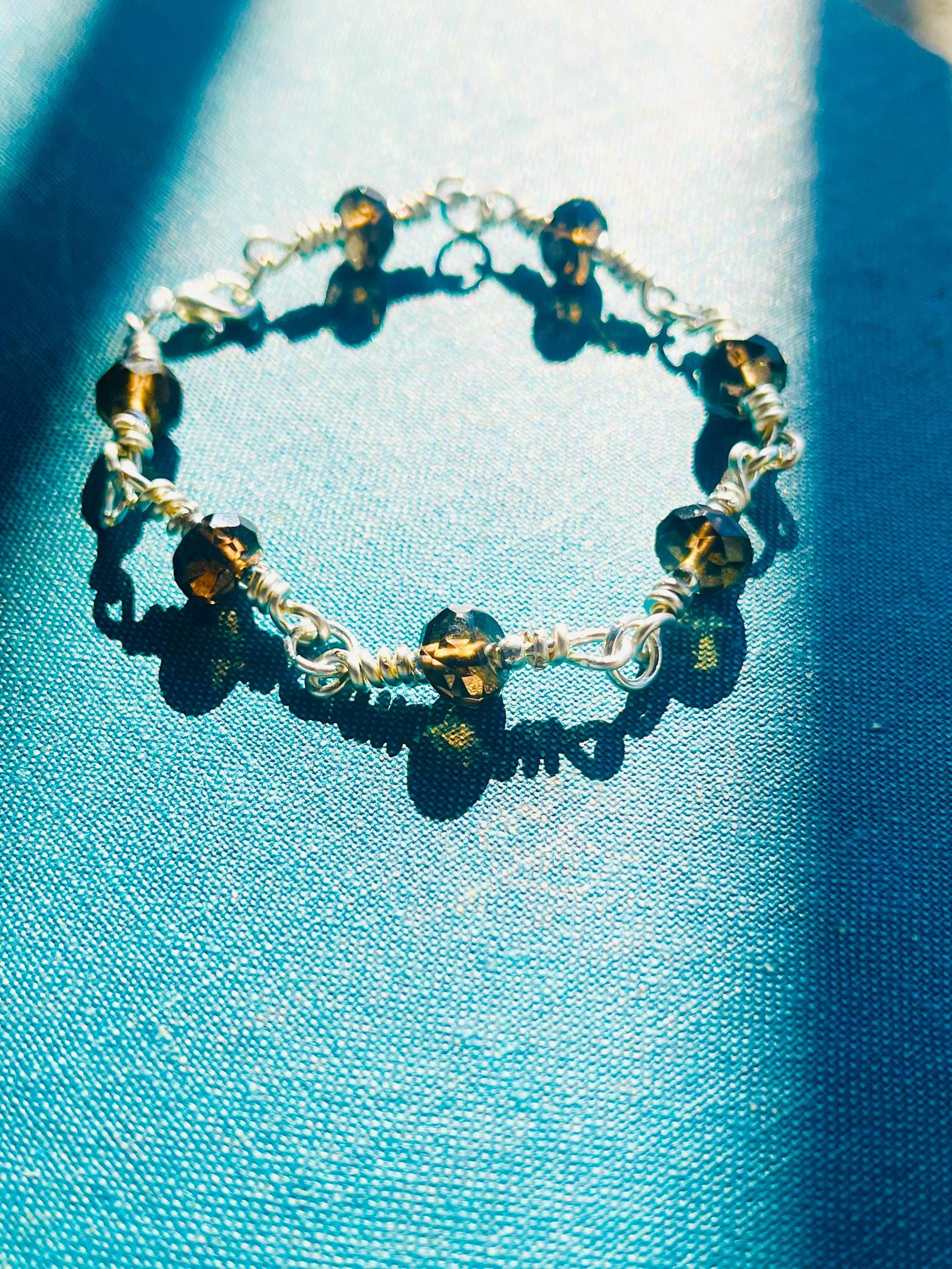 ~made with silver toned wire, silver tiny accent beads, and Smokey quartz.