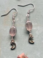 These dangly moon earrings are made with sterling silver and light purple fluorite stones. They measure 1 inch each and come to you gift wrapped.