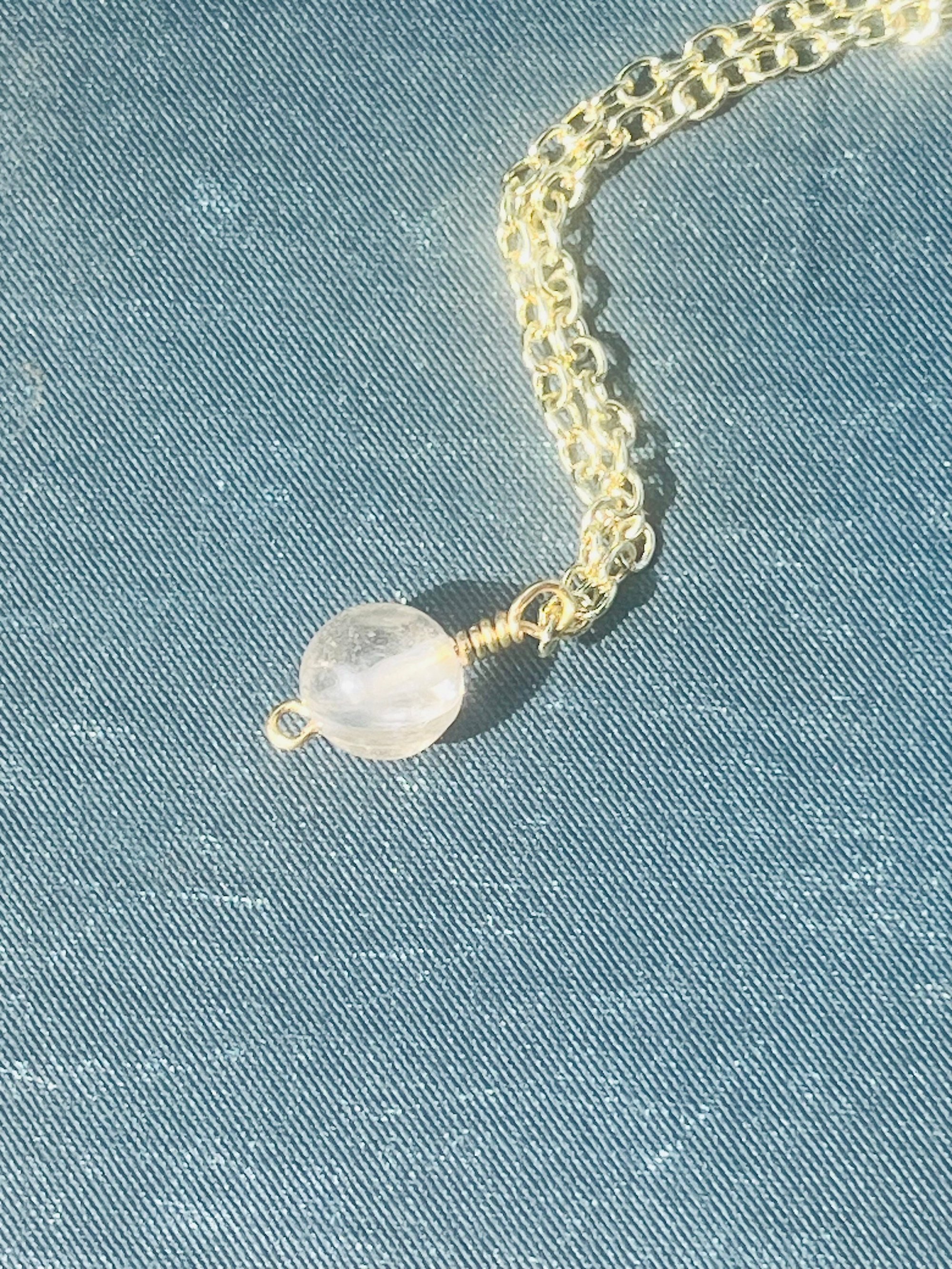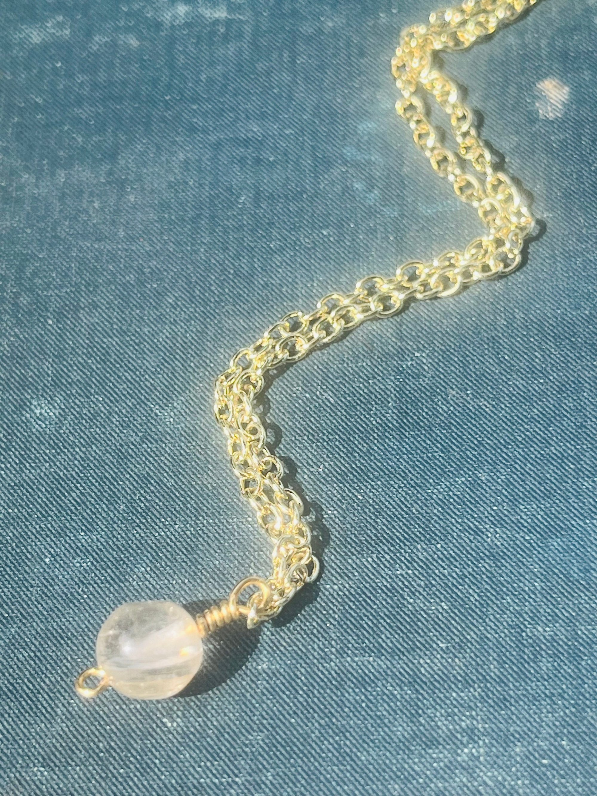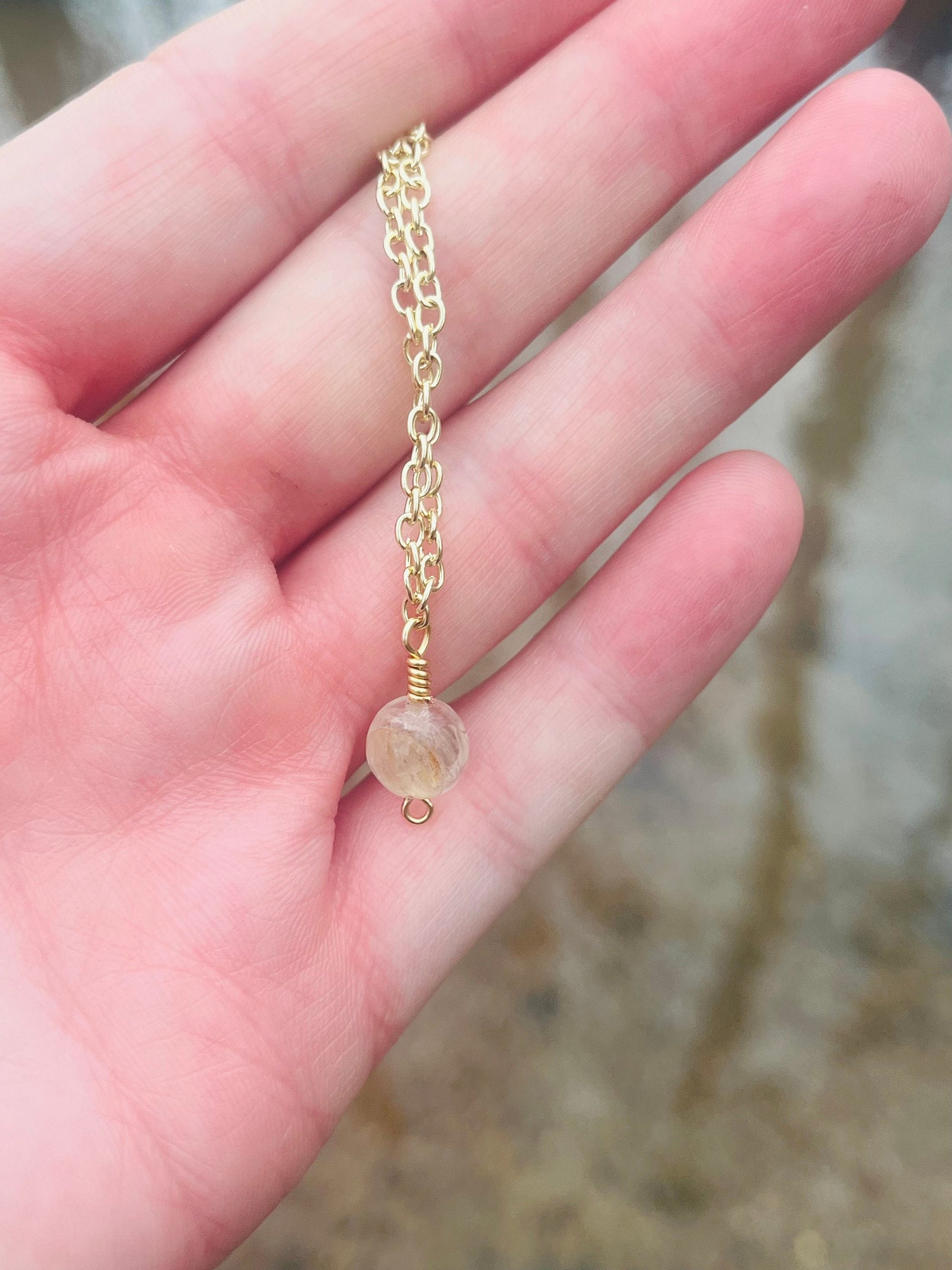 ~necklace made with a tiny rutilated quartz stone on gold chain