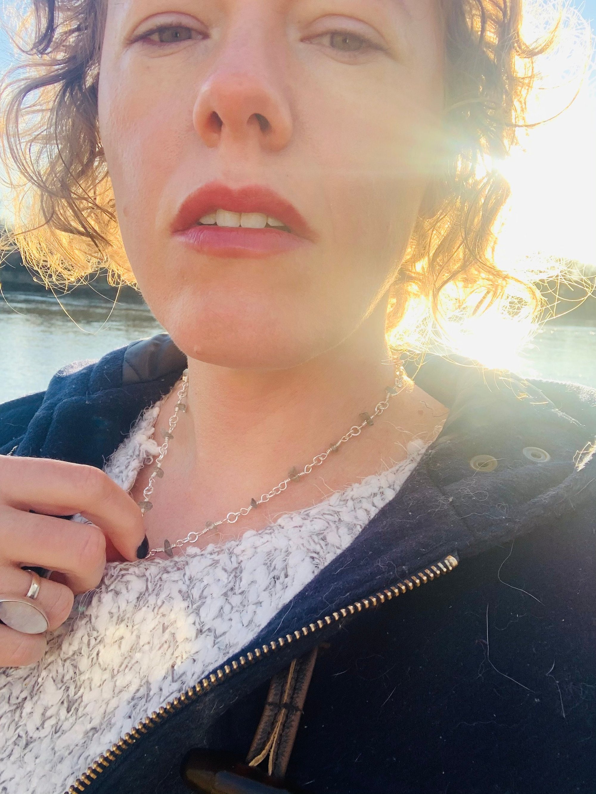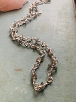 This necklace is made with silver wire and tiny Labradorite beads. It measures 18 inches long and closes with a lobster clasp.